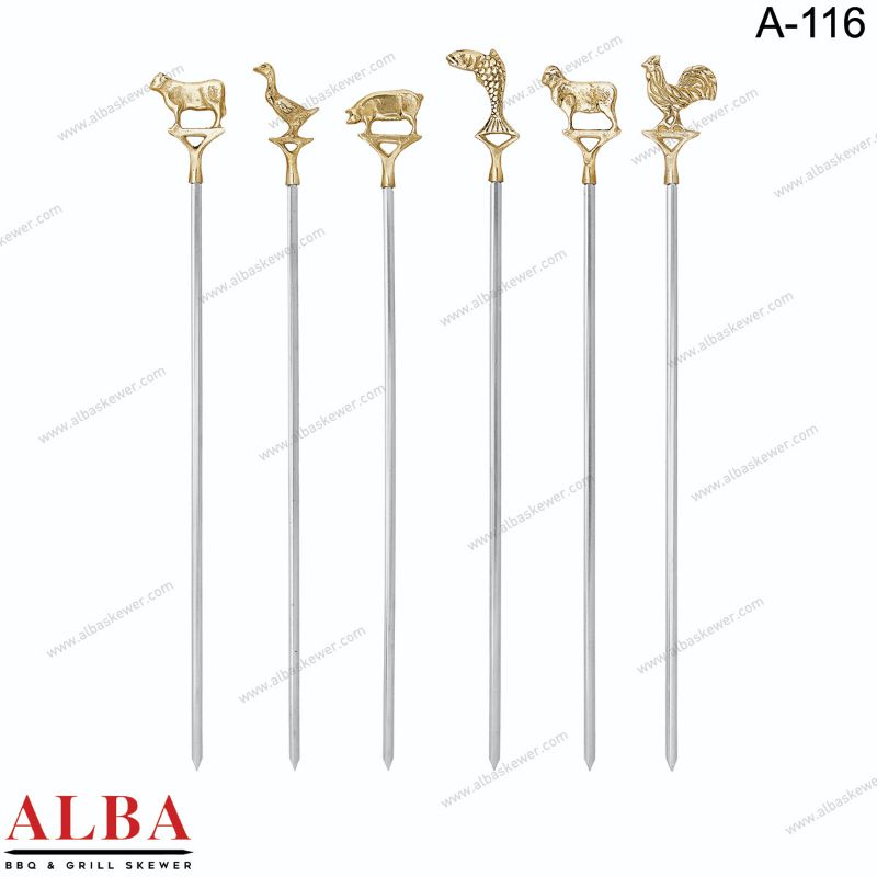 You can present the meat, vegetables, and other foods you prepare on the grill in a more fun and stylish way with these animal-patterned BBQ skewers. Made of stainless steel, these skewers are sturdy and durable, suitable for long-term use. The cute animal figures will add a special touch to your presentations and will be particularly appealing to children.
