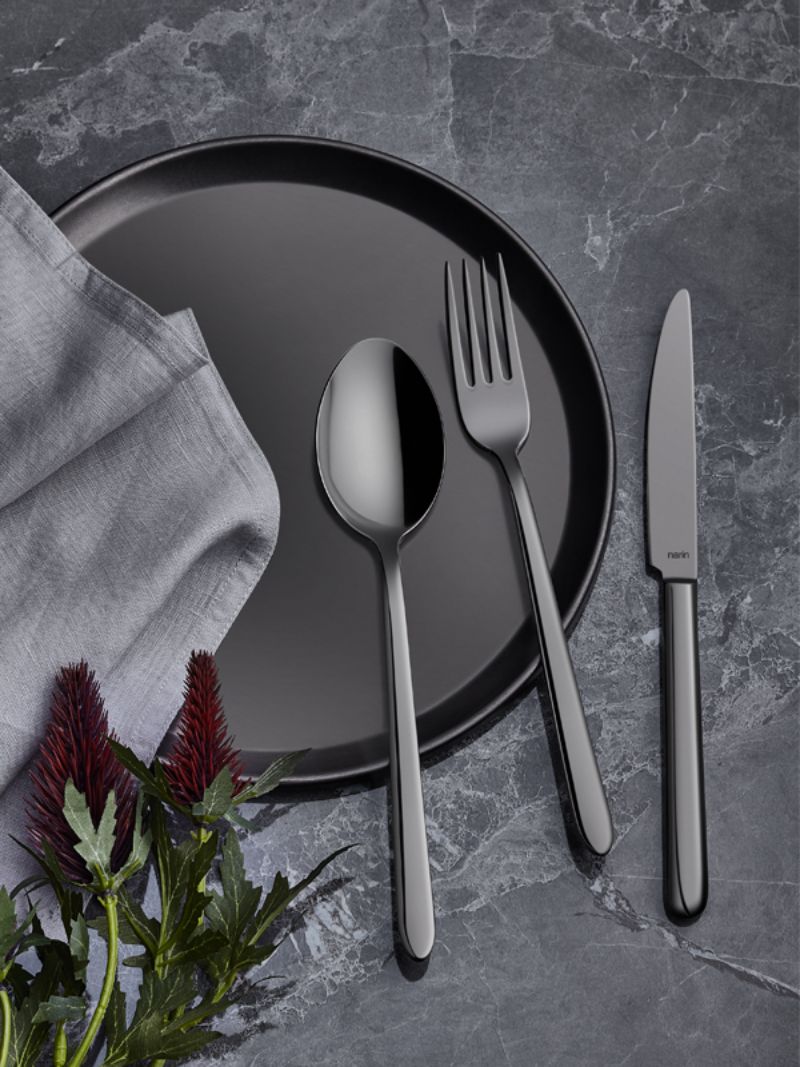 With Narin fork, spoon and knife models, you can create simply elegant and chick sets for your tables. All of our modellings present various designs with the plain, satin, gold, satin gold, gold pvd titanium, copper pvd titanium and anthracite pvd titanium coating applications. All of these designs suits any dinner set we offer. Our sets are composed of 18 pieces, 24 pieces, 30 pieces, 36 pieces, 42 and 89 pieces depending on your choice.