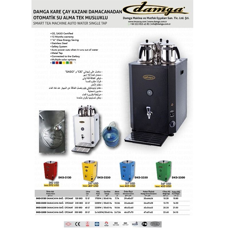 * Water boiler’s metal faucets: easy to use, durable special taps that have been developed by Damga Makina Company.